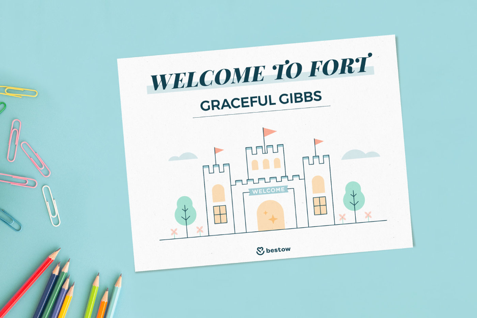 Making your fort personal for you and your family can make it more fun to spend time inside. Bring in decorations such as lights, stuffed animals and rugs. Consider also making a fun, festive sign or bringing in your family’s favorite things to make the fort all your own and a sanctuary where you can have fun together as a family. For added whimsy and personalization, check out the following printables from Bestow.